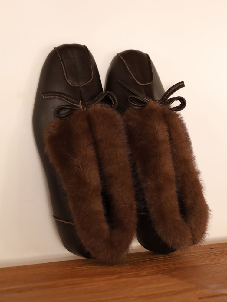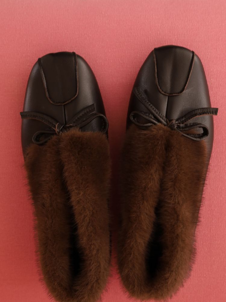 'As if a small stone rests on the toes — quiet balance, composed grace. A sense of calm resting upon soft leather.