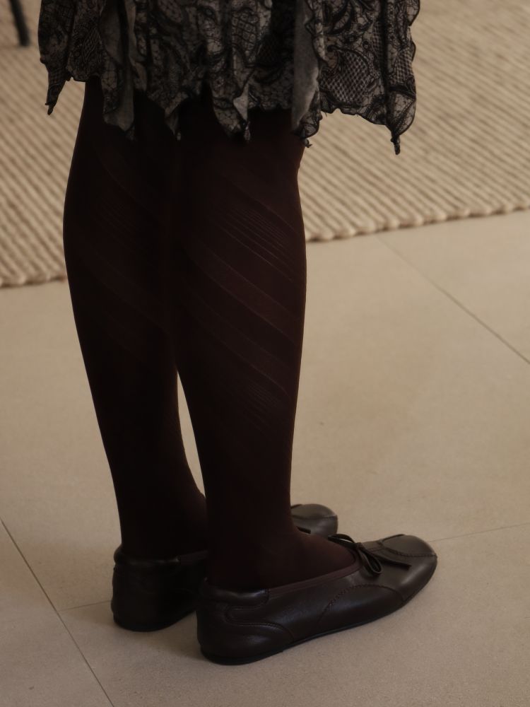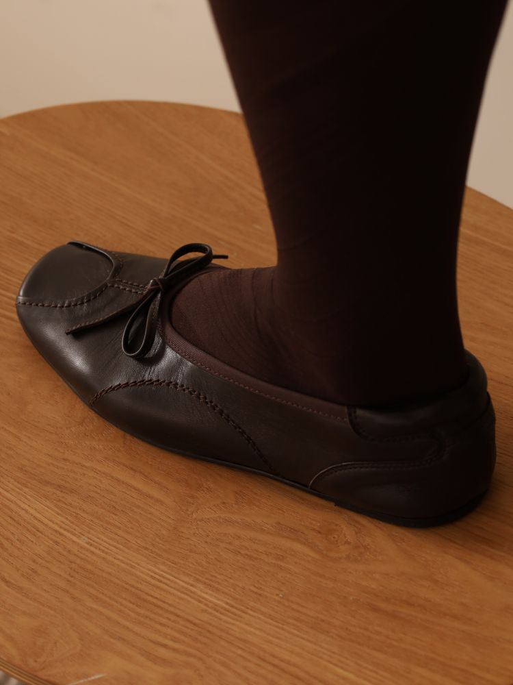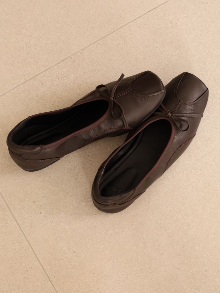 ‘발끝에 조약돌 하나를 얹은 듯, 조용한 균형과 단정한 감각. 부드러운 가죽 위 머무는 안정감.