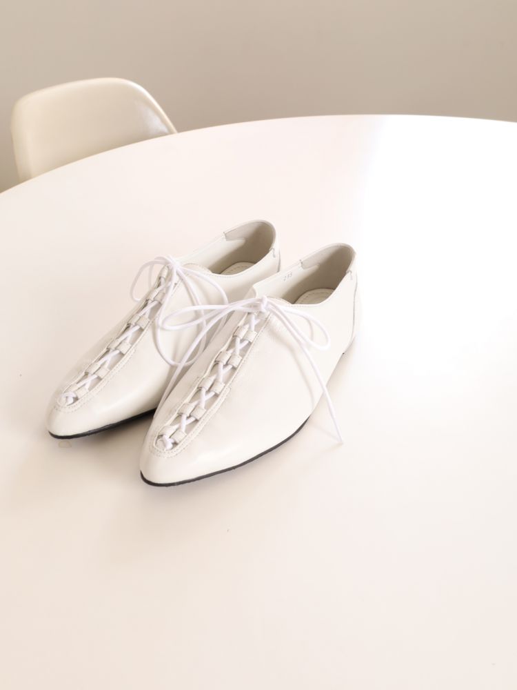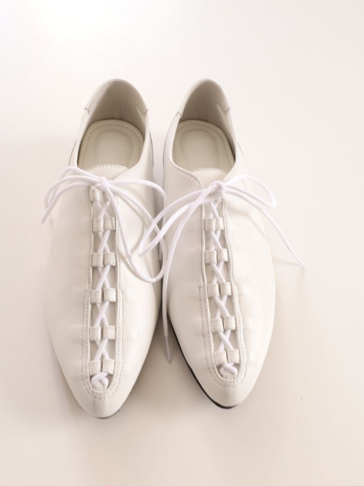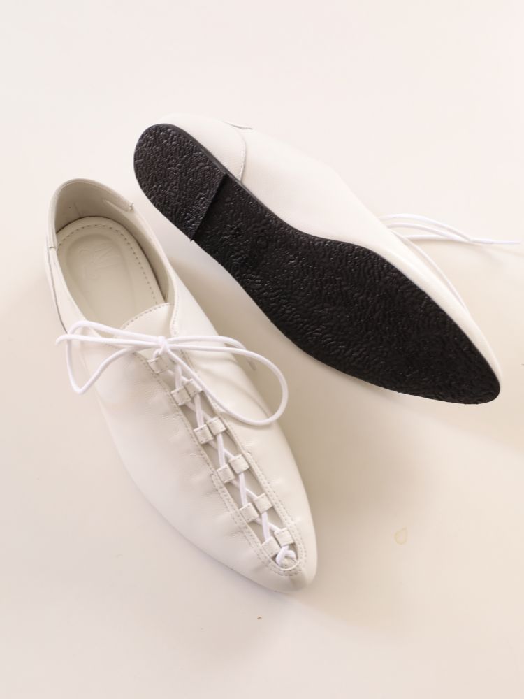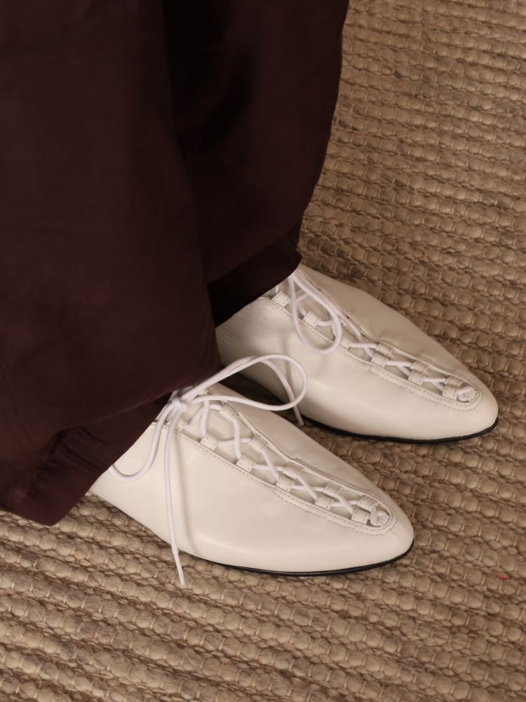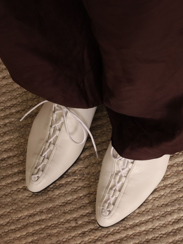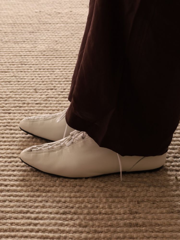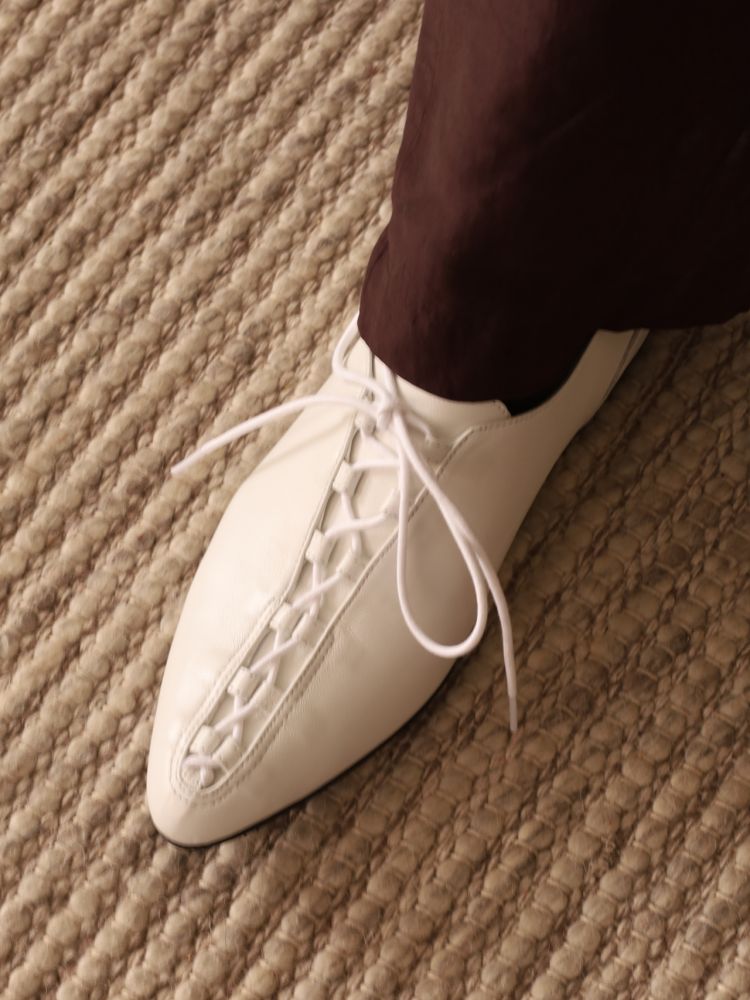 ‘‘Noma is a vintage-inspired sneaker, drawing from the distinctive lace structure of trekking shoes. Its structural detailing gently wraps and secures the foot, placed with restraint upon a classic silhouette. A refined toe line, supple lamb leather, and balanced cushioning come together to create a sense of ease—one that flows naturally through the rhythm of everyday city life.’’